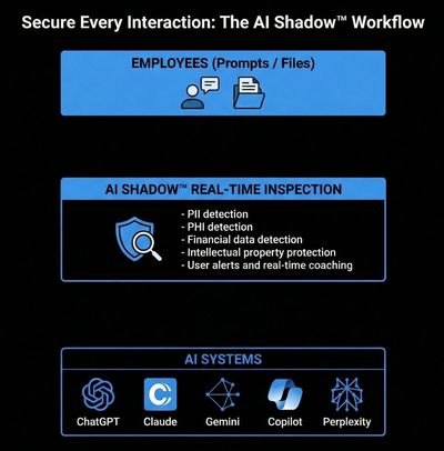 AI Shadow™ sits between employees and generative AI systems, inspecting prompts and uploaded content before information reaches the AI model.